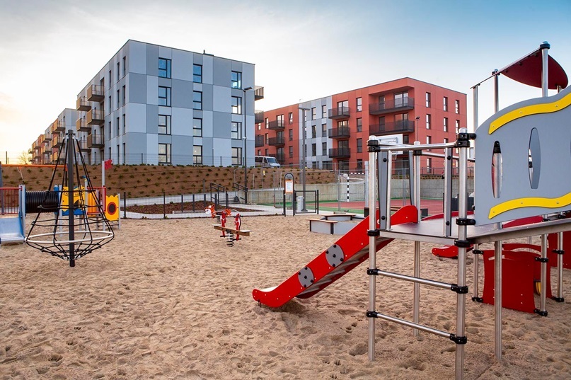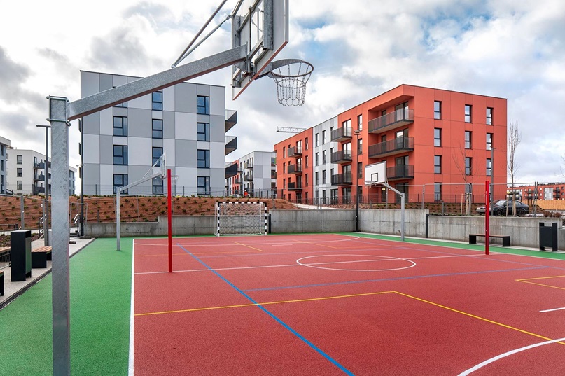 Nieodłącznym elementem inwestycji są także tereny zielone oraz przestrzenie rekreacyjne, sprzyjające zarówno relaksowi, jak i aktywnemu spędzaniu czasu na świeżym powietrzu. Mieszkańcy mają do dyspozycji boisko wielofunkcyjne oraz rozbudowany plac zabaw dla dzieci, które tworzą bezpieczne i przyjazne otoczenie dla najmłodszych.