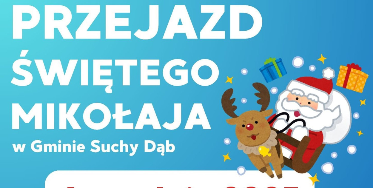 Święty Mikołaj zawita do Suchego Dębu i odwiedzi wszystkie miejscowości gminy. Wydarzenie będzie miało miejsce w dniach 6-7 grudnia.