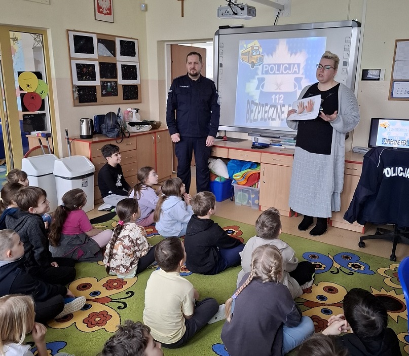 W ramach ogólnopolskiej akcji „Kręci mnie bezpieczeństwo w zimie” funkcjonariusze oraz pracownicy sanepidu odwiedzają miejsca zimowego wypoczynku, gdzie spotykają się z młodymi uczestnikami ferii. Podczas zajęć przypominane są podstawowe zasady bezpieczeństwa – zarówno w ruchu drogowym, jak i podczas zimowych zabaw oraz aktywności charakterystycznych dla tej pory roku.