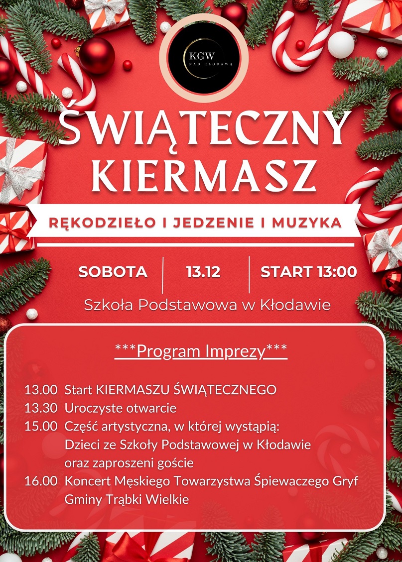 W Szkole Podstawowej w Kłodawie już od godziny 13:00 ruszy pełen atrakcji Świąteczny Kiermasz. To coroczne wydarzenie, które łączy lokalną społeczność, oferując wyjątkową atmosferę oraz możliwość zakupu ręcznie wykonanych ozdób i przysmaków.