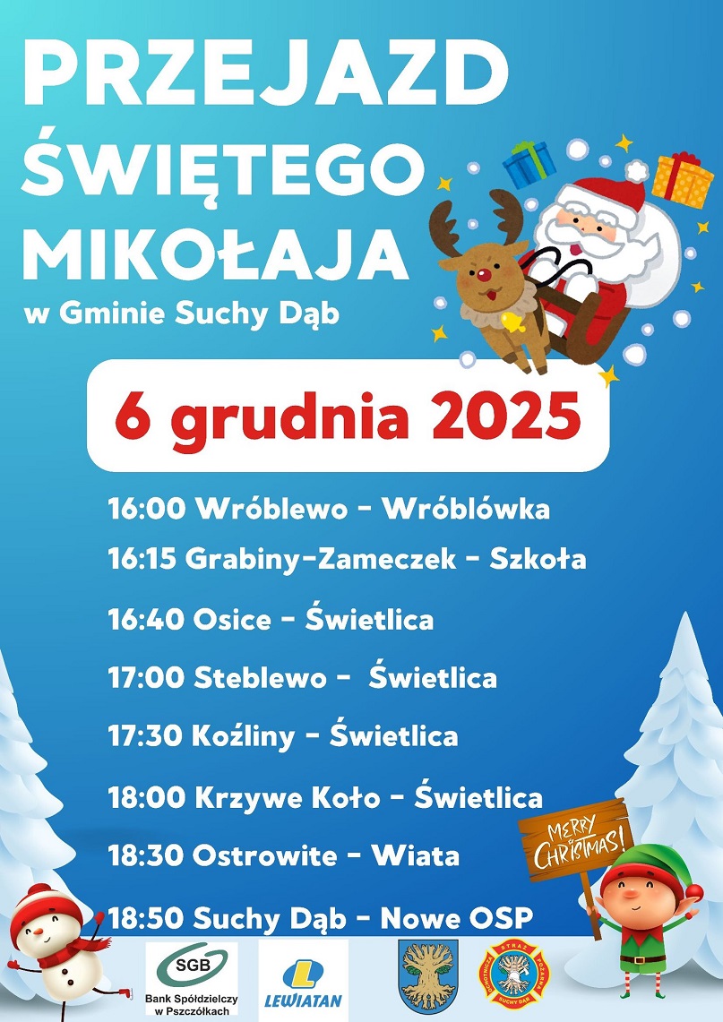 Przejazd Mikołaja odbędzie się we wszystkich miejscowościach gminy Suchy Dąb.