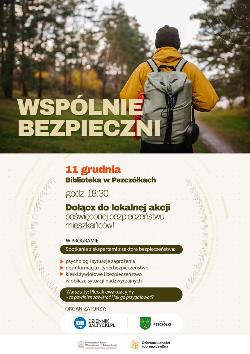 Spotkanie odbędzie się 11 grudnia o godz. 18:30 w Gminnej Bibliotece Publicznej w Pszczółkach. Wydarzenie ma na celu przekazanie wiedzy, która pomaga chronić siebie i swoich bliskich – zarówno w sytuacjach codziennych, jak i nagłych.