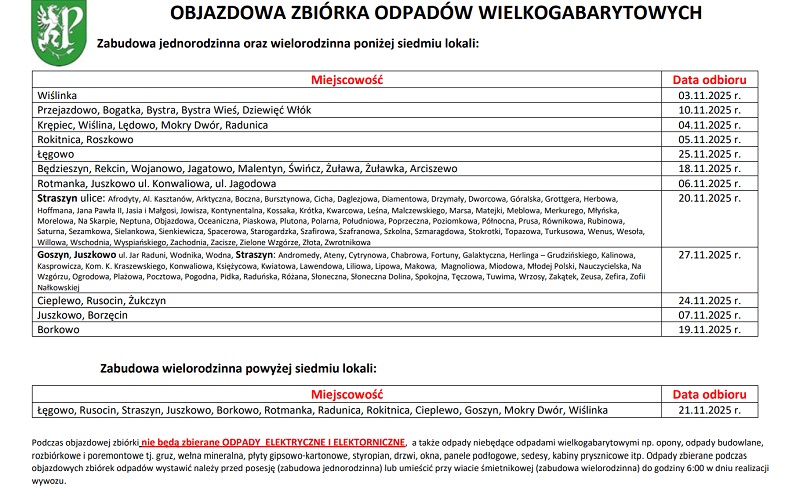Organizatorzy proszą mieszkańców o przestrzeganie zasad segregacji oraz o wystawianie wyłącznie tych przedmiotów, które zostały wskazane do zbiórki.