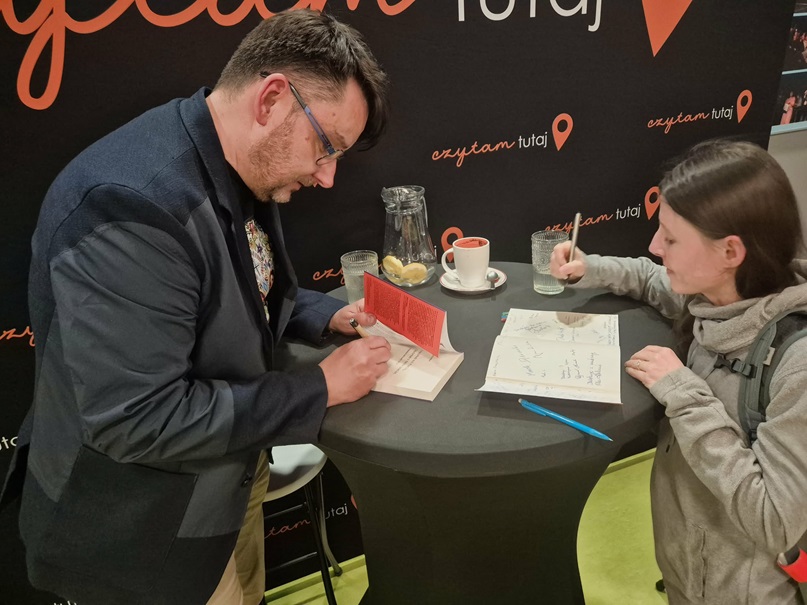 Spotkanie nie zakończyło się jedynie rozmową. Po jego oficjalnej części przyszedł czas na autografy – w nietypowej formie. Autor nie tylko podpisywał książki, ale także zbierał podpisy od uczestników.