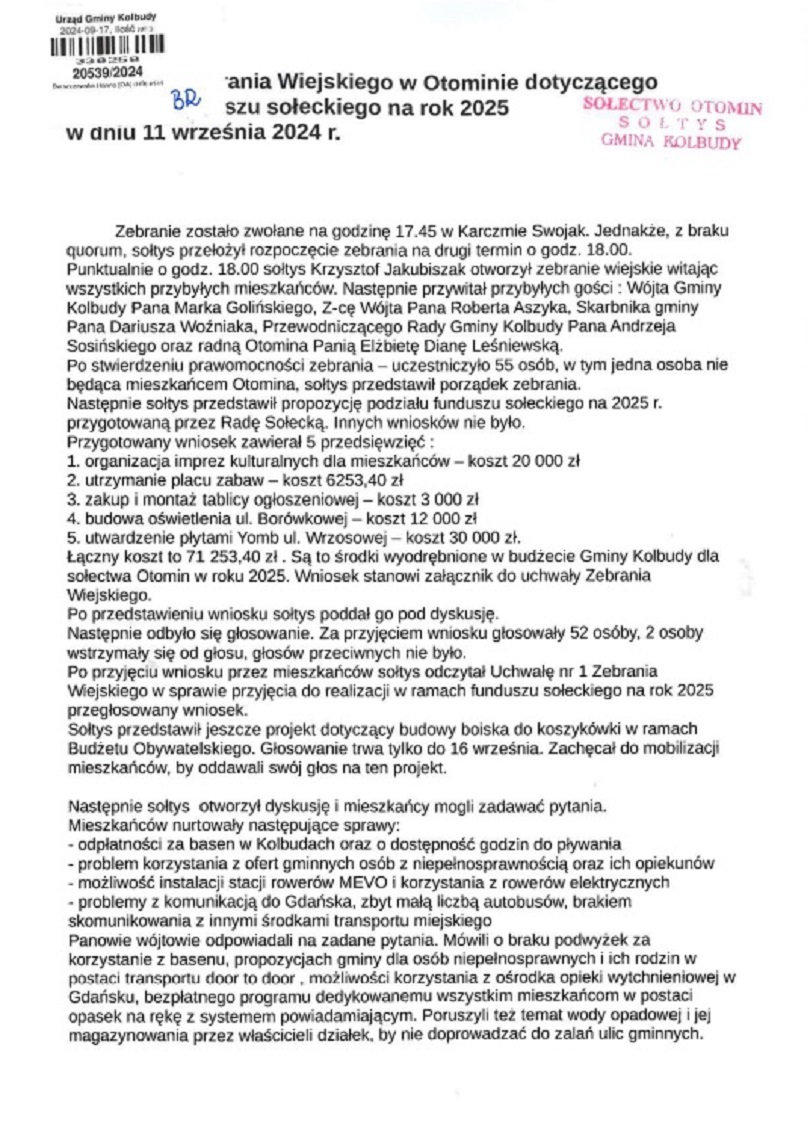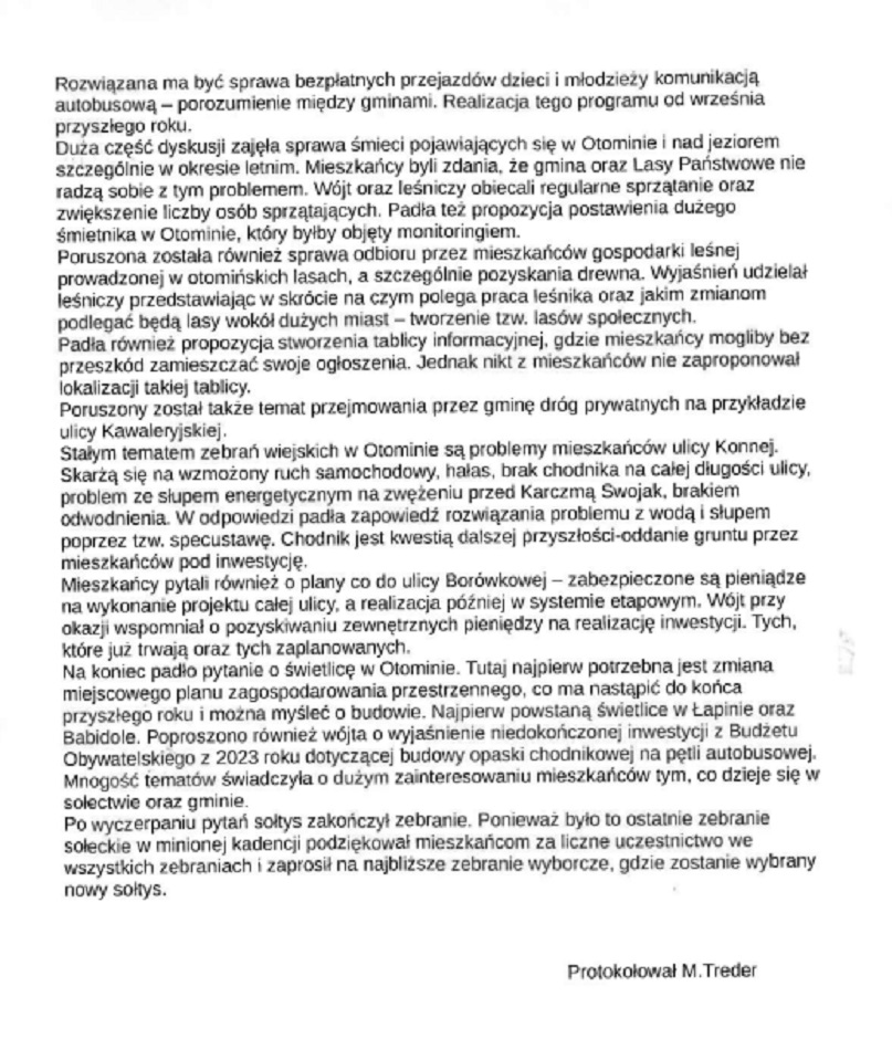 Oto protokół sporządzony podczas wspomnianego spotkania, w którym udział wzięło blisko 60 mieszkańców.