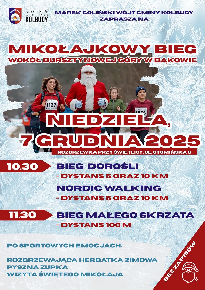 – Mikołajkowy Bieg wokół Bursztynowej Góry odbędzie się 7 grudnia a organizatorem wydarzenia jest wójt gminy Kolbudy, Marek Goliński.