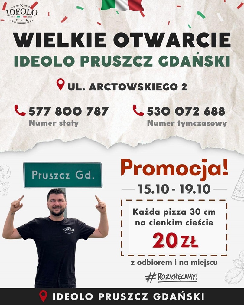 Na start przygotowano specjalną ofertę: przez pierwsze pięć dni, od 15 do 19 października, każda pizza o średnicy 30 cm na cienkim cieście będzie dostępna w promocyjnej cenie 20 złotych.