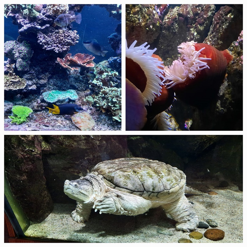 W międzyczasie uczniowie zwiedzali również ekspozycję akwarium, podziwiając różnorodność fauny i flory morskiej. Wśród eksponatów znalazły się liczne gatunki ryb, meduz, krabów i zachwycające koralowce. Przewodnicy w ciekawy sposób opowiadali o różnych ekosystemach morskich. Wyjaśnili, jak każde stworzenie – od planktonu po wielkie ryby – odgrywa kluczową rolę w utrzymaniu równowagi w podwodnym świecie.