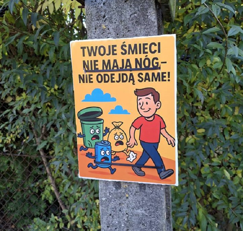 Nie zawsze problemem jest brak śmietników czy ich rzadkie opróżnianie – czasem wystarczy odrobina kreatywności, by zachęcić do zmiany zachowań. Tabliczki z poczuciem humoru mają prowokować do refleksji i sprawić, że osoby lekceważące zasady czystości choć przez moment się zastanowią.