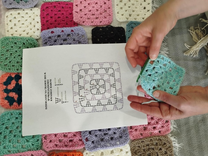 Spotkania odbywały się zarówno na świeżym powietrzu, jak i pod dachem, by każdy chętny mógł dołączyć. W ruch poszły szydełka, a wspólne działania połączyły pokolenia: od dzieci najmłodszych klas, przez rodziców, po seniorów.