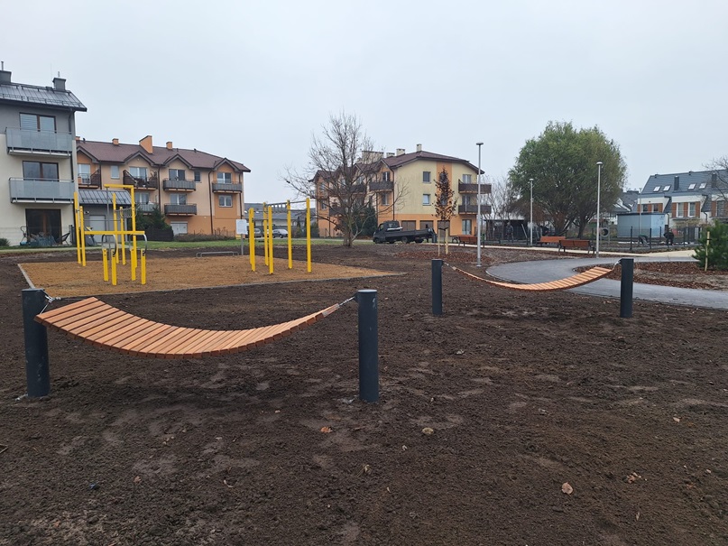 W ramach inwestycji powstały: tor rolkarsko-rowerowy, idealny do nauki jazdy i codziennej aktywności, plac zabaw, który szybko stanie się ulubionym punktem najmłodszych, strefa relaksu i ćwiczeń, zachęcająca do odpoczynku i rekreacji na świeżym powietrzu oraz wybieg dla psów, pozwalający właścicielom czworonogów na bezpieczne i wygodne spacery.