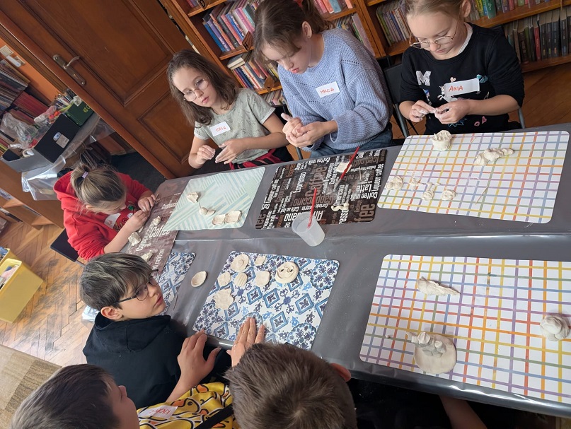 Finałem spotkania była praca z gliną. Prehistoryczne figurki i formy pokazały, jak swobodnie dzieci potrafią wyrażać swoje pomysły poprzez sztukę.