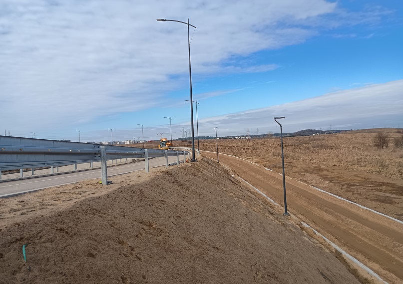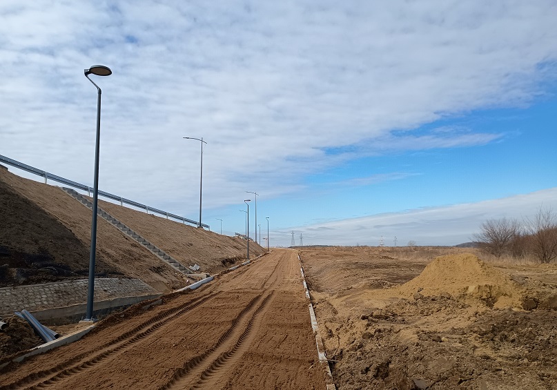 Równolegle prowadzone są roboty związane z infrastrukturą towarzyszącą. Na miejscu montowane są elementy oświetlenia ulicznego, a także realizowane są prace teletechniczne, które są niezbędne dla prawidłowego funkcjonowania nowej drogi.