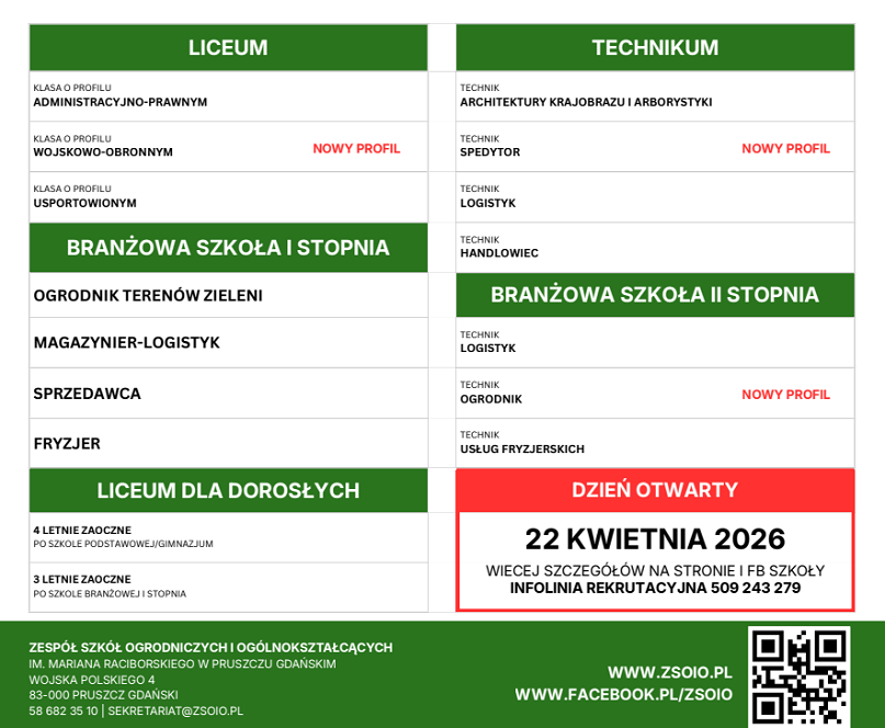 Dzień Otwarty to doskonała okazja, aby poznać atmosferę szkoły „od środka”, dowiedzieć się więcej o kierunkach kształcenia oraz uzyskać odpowiedzi na wszystkie pytania dotyczące rekrutacji i życia szkolnego.