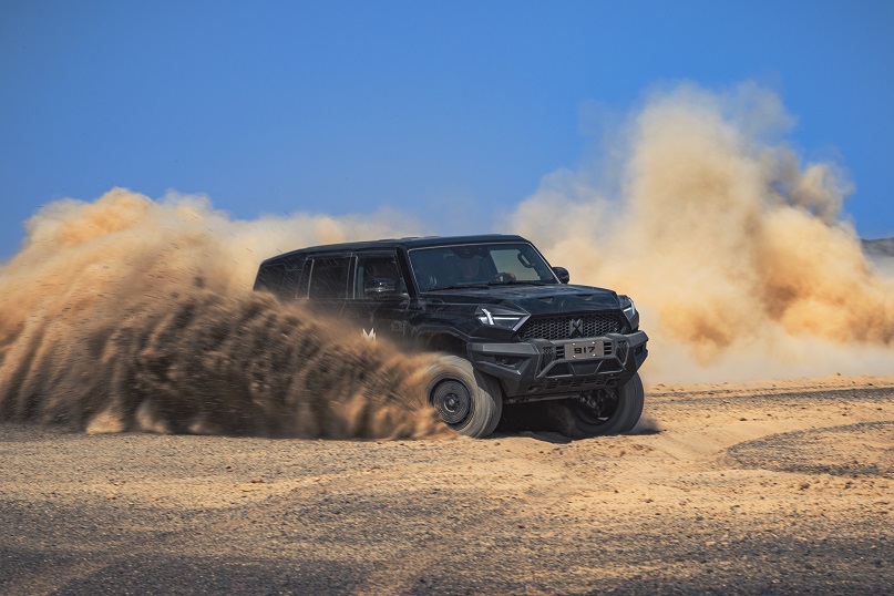 Bateria o pojemności 142,7 kWh (NMC Qilin od CATL) zapewnia zasięg 420 km według cyklu WLTP, a moc ładowania wynosi 100 kW (DC) lub 11 kW (AC). Pojazd radzi sobie w trudnym terenie dzięki dwubiegowej skrzyni automatycznej, pneumatycznemu zawieszeniu o skoku 150 mm i hamulcom Brembo z 6-tłoczkowymi zaciskami.
