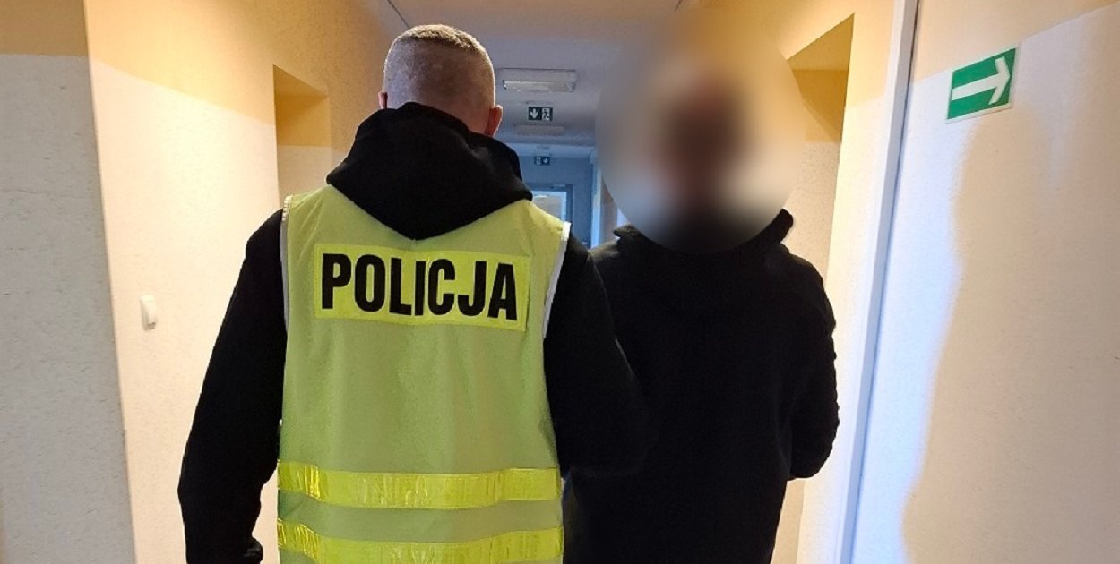 Mężczyzna został zatrzymany i przewieziony do pomieszczenia dla osób zatrzymanych.
